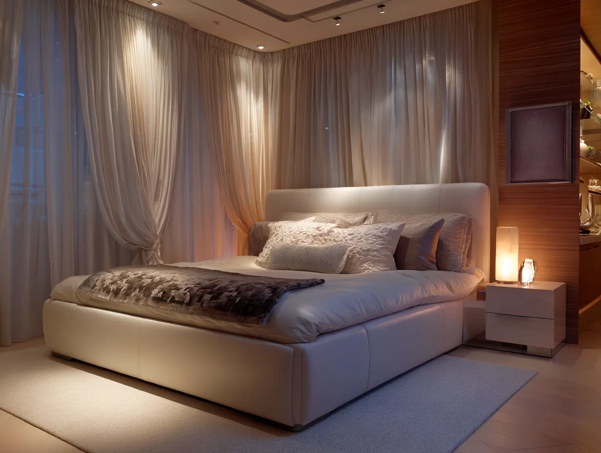 Letto matrimoniale - struttura imbottita similpelle - 208x188x102 cm - beige - design moderno per camera da letto